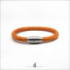 Discover our unique snakeskin bracelet at Jewel Shapes. Shop this women's handmade orange snake leather bracelet with engraved stainless steel magnetic closure in high-end quality.